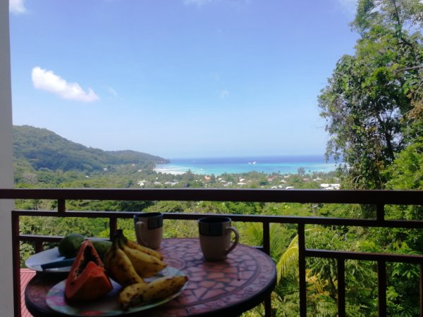 Ujutru nas je na terasi dočekao tanjir voća i kolača. Gazdarica je mislila na nas za Božić! Prve komšije su nam bile mladi par iz Bocvane, na medenom mesecu. Pozvali su nas da im se pridružimo na večeri jer imaju previše hrane a sutra odlaze. Baš smo se smejali kako jeftino prolazimo na Sejšelima.