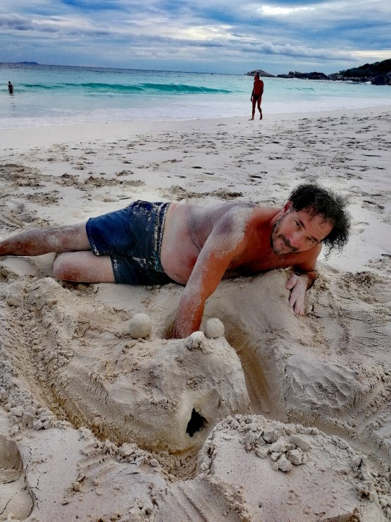 Kasnije smo pravili kule u pesku, gađali se bombama od peska i svi oko nas (a nije ih bilo mnogo) su se smejali matoroj deci. Kotrljali smo se po prelepom belom pesku i nauživali na najlepšem ostrvu na svetu.