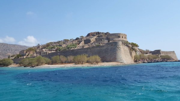 Smestismo se mi u Elundi u jednom božanstvenom hotelu, jako jeftinom tog aprila i ujutru se uputismo autom u luku da tražimo brod za ostrvo. Dok smo parkirali, ugledala sam autobus koji iskrcava svoje putnike i oni lagano idu ka brodu. Požurili smo za njima i ukrcali se, bez da ikoga pitamo gde ide. Nekako mi se podrazmevalo da ide na Spinalongu, gde bi drugo. Ja uvek slušam svoju intuiciju bez mnogo razmišljanja, što nekad dovede i do zanimljivih situacija. Pitali smo se u vožnji kad će doći neko da naplati karte.