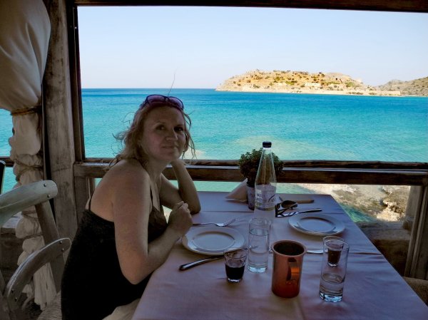 Brod je naglo zaokrenuo, obilazeći Spinalongu i krenuo prema kopnu.Uf kakvo olakšanje.Videli smo da ide prema Plaki ali nema veze. Bitno da je Krit. Svi su se iskrcali u Plaki i vodičica je rekla da idu u tavernu na ručak. Moj muž se zezao da već kad smo tu i mi odemo sa njima. Ma kakva taverna, mislila sam se, samo da sam sišla s broda . Izdvojili smo se iz grupe i pitali nekog prolaznika kako da dođemo do Elunde. Pogledao je na sat i rekao nam da za 10 minuta ide bus. Ukrcali smo se i za 3 evra došli do svog auta. E onda smo autom otišli nazad u Plaku, izabrali tavernu Delfini s pogledom na Spinalongu i ručali odlične hobotnice. Konobar je bio niko drugi nego neki Srbin i dobro nas je odrao.