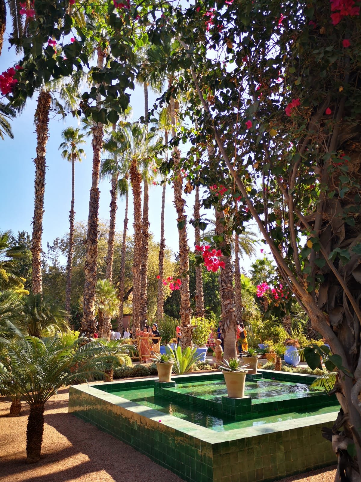 Krasan doručak i lagano krećemo ka Jardin Majorelle. Čitala sam da je navala turista i bolje je otići ranije. Naravno da 10 sati nije ranije i nekih pola sata smo čekali da dođemo na red jer je gužva opasna. Unutra se sve to lepo rasporedi i nemate osećaj natrpanosti. Raskoš egzotičnog bilja, cveća, bazenčića i fontana, umirujući mirisi i tišina. Sve te divote doživećete u Žarden Mažorelu. Nakon izlaska, vidno umorni od šetnje, uzeli smo taxi do centra. Čekala nas je Kutubija na centralnom trgu Džem El Fna, Palate El Bahia i El Badi. Prelepe arabeske, vrata, ornamenti i zagušljiv grad. Prosto nam je falio vrt. Konačno otkrovenje! Restorani na krovovima, odakle je predivan pogled i svež zrak. Išli smo u nekoliko ili jesti ili piti i nauživali se toga dana.