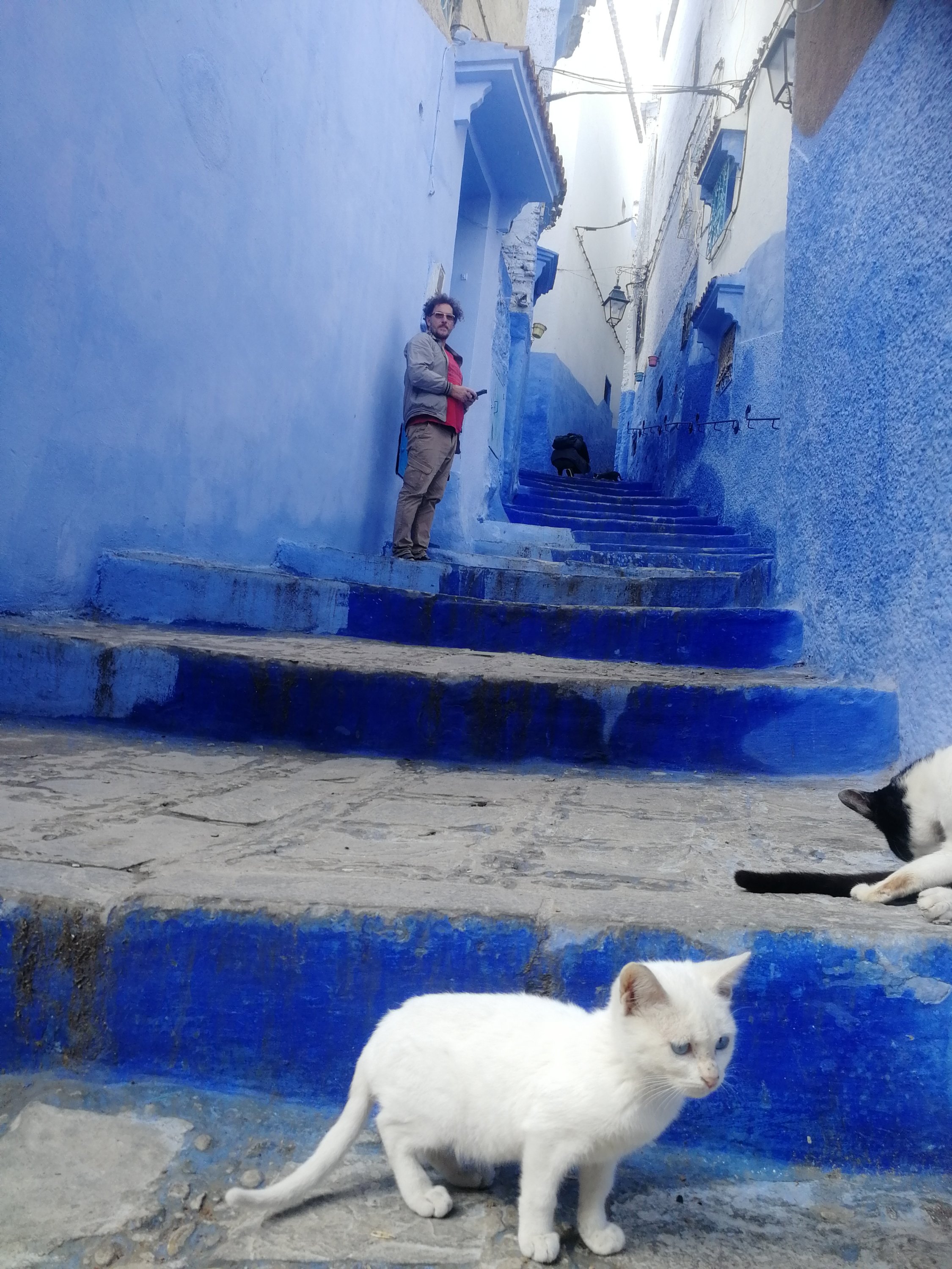 Prošli smo pored Rabata koji odlučujemo da zaobiđemo zbog nedostatka vremena. Cilj nam je plavi grad Chefchauen i nekako ga jedva čekamo. Vrhunac našeg putovanja. Već sa brda, dok mu se primičete, deluje fascinantno. Kada uronite u njegovo plavetnilo, to mogu samo slike da opišu, reči su nedovoljne. Konačno mir bez nasrtljivih trgovaca, pravi kulturni, gospotstveni Berberi, Mavari, Jevreji. Sve je plavo, preovladava svuda na dnu građevina a u visinama su zemljane, oker nijanse. Rečica žubori u dolini a strme uličice ukrašene razmaženim mačkama vode do kula. Izludeli smo od šetanja, zavlačenja po sokacima, upadanjima u nečija dvorišta. Naša kasba je i prekrivače imala u plavoj boji i divno je mirisalaU Maroku, plava boja je tesno vezana sa njihovim religioznim ubeđenjima, berberi nose plave marame na glavi i zovu ih plavi ljudi. Ovaj grad je dugo bio zabranjen za strance kao i grad Mulaj Idris, jer su se smatrali svetim. Ovde se hašiš slobodno puši i nudi jer se proizvodi u blizini. Stanovništvo je totalno izmešano. Posle španske rekonkiste ovde su se naselili izbegli Jevreji i Mavari. Šefšauen je hodajuća romantika🥰