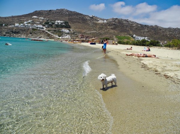 Mykonos mi uopšte ne bi bio u planu da mi tog dana oči nisu ispale ugledavši avio kartu do njega za 1 euro. Jedan pravac, početak jula. Hajde, bacim ja tu 3 evra za 3 avio karte u nadi da naleti uskoro i dobra akcija za povratak. Avio kompanija Volotea ima stalno akcije, vrlo često naleti i drugi pravac za neku siću, čak i mesecima kasnije. Zato morate biti strpljivi. Lepo sam ja za nas troje platila tri karte 18 eura a za psa čak 80! Leteli smo u cik zore iz Venecije i našem psu je to bio prvi let. Ne mogu vam opisati koliko se siromah treso i bio izbezumljen. Svako malo sam ga uzimala u naručje i smirivala, na šta su se odmah tu nacrtali stjuarti. Kao da su imali skrivenu kameru i posmatrali me. Insistirali su da ga vratim u torbu, ma bez milosti. Kod pete opomene su mi pretili da će me prijaviti kapetanu. Baš sam se smejala! Da li će me izbaciti iz aviona?
