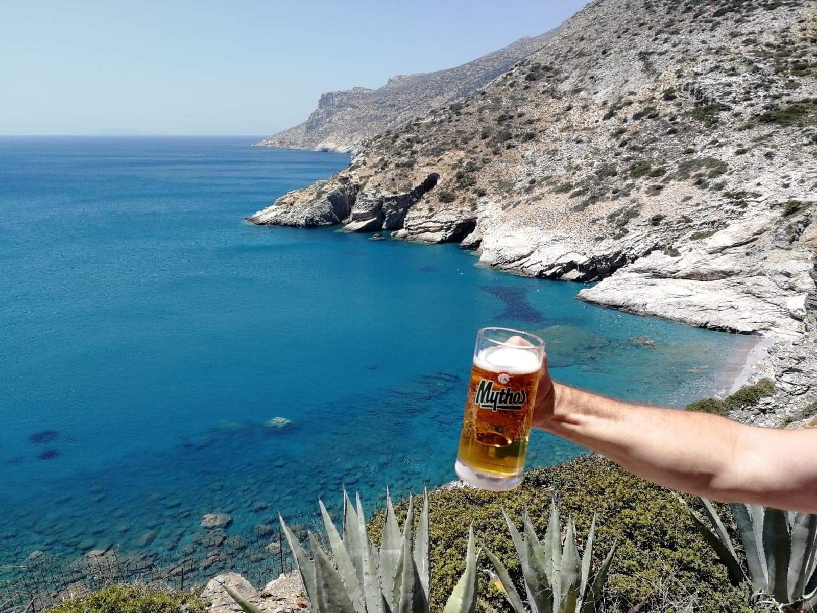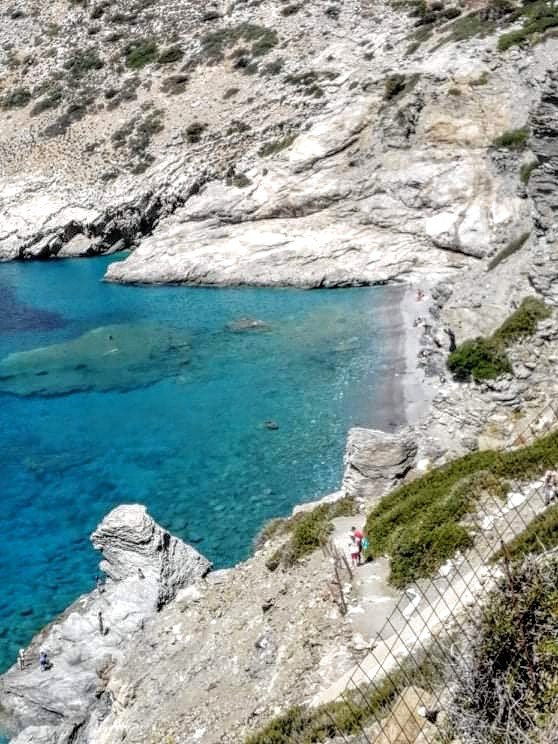 Poslednja plaža koju smo obišli je Agios Pavlos. Mali rt sa belim žalom i pogledom na obližnje ostrvce Nikuria. Zanimljiva je na oko ali meni ležanje na kamenju, pa makar bio ploščati nežni žal, bude jako neudobno i brzo pobegnem odatle.